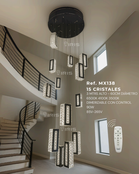 Lampara de lujo 15 cristales MX138Lampara de lujo 15 cristales MX138